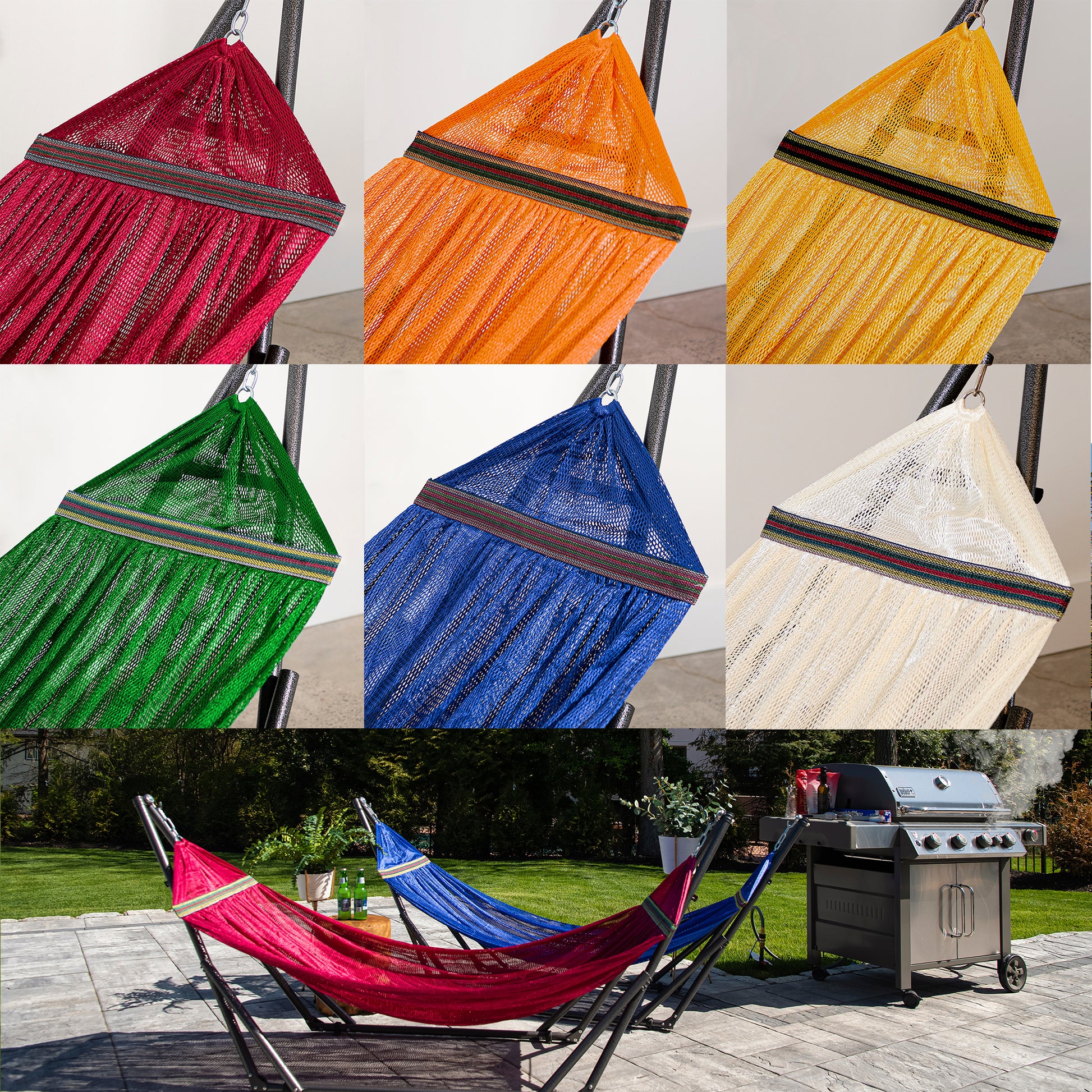 Crafted from stainless steel and 100% polyester, the EZ Daze Hammock is durable and can hold up to 300 lbs.